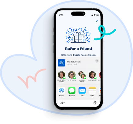 Bring your friends on board and get rewarded! Sharing The Body Coach app has never been easier or more rewarding. Invite your friends to join the app and give them a 2-week free trial on the annual subscription.